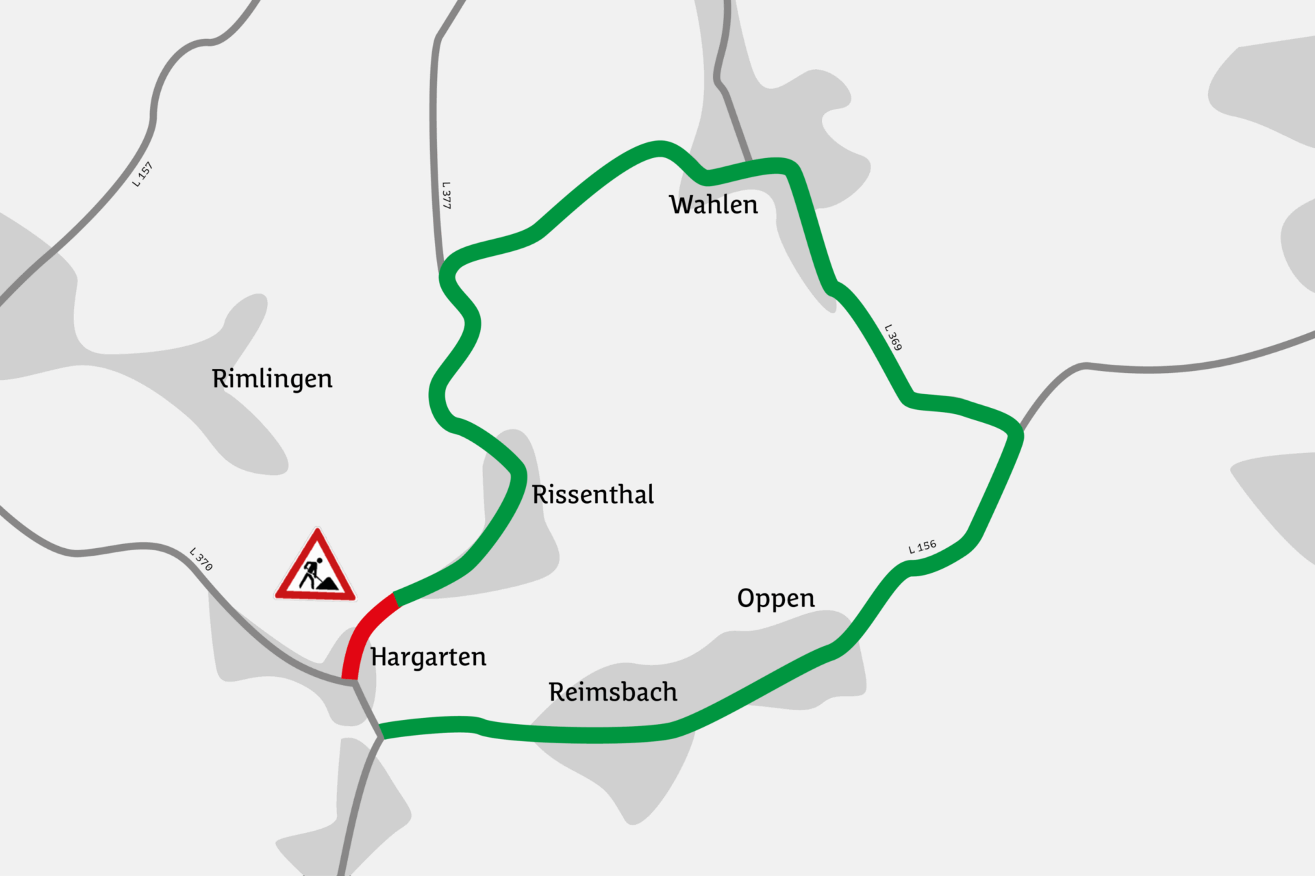 Für die Arbeiten muss die L 377 voraussichtlich bis Freitag, 12. Dezember 2025 voll gesperrt bleiben. Gesperrt ist in der „Rissenthaler Straße“ der Abschnitt ab der Einmündung „Hargarter Straße“ bis kurz vor den Ortseingang Rissenthal. Bitte folgen Sie der ausgeschilderten Umleitung: