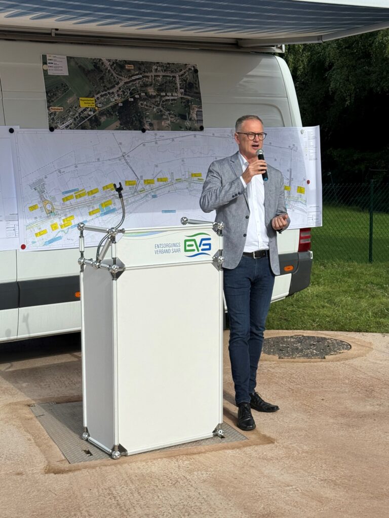 Zu der Informationsveranstaltung konnten die Geschäftsführer des EVS, Stefan Kunz und Holger Schmitt sowie Thomas Meyer, Projektleiter der Baumaßnahme, neben vielen interessierten Gästen den Bürgermeister der Gemeinde Beckingen, Thomas Collmann, die Ortsvorsteher der Gemeindebezirke Erbringen, Hubert Schwinn, Oppen, Ralf Selzer und Reimsbach, Susanne Ferber, MDL Sebastian Schmitt, den Fraktionsvorsitzenden der SPD im Gemeinderat, Josef Bernardi, weitere Gemeinderats- und Ortsratsmitglieder sowie Mitarbeiter der bauausführenden Firmen begrüßen.