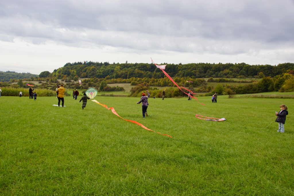Alljährlich veranstaltet der Kultur- und Heimatverein Haustadt am Tag der deutschen Einheit auf dem Berg Richtung Bietzerwald sein Drachenfest. Die traditionelle Veranstaltung inmitten der Natur lockte auch diesmal viele Kinder mit ihren Eltern nebst Großeltern aus Haustadt und Umgebung an. So herrschte am Donnerstagnachmittag bei weitgehend windstillem, aber schönem Wetter wieder Treiben auf einer frisch gemähten Wiese. Von dort aus konnten die Kinder mit mütterlicher oder väterlicher Unterstützung nach Herzenslust ihre bunten Drachen aller Art steigen lassen, was ihnen große Freude bereitete. Ebenso ließen sie Luftballons mit Namens- und Adresskarten zu einem Wettbewerb über die weitesten Ziele in die Höhe fliegen. Ihren Spaß hatten die Kinder zudem am Glücksrad. Aber auch für das leibliche Wohl war mit kalten und warmen Getränken, Rostwurst, Kuchen und Crepes bestens vorgesorgt. Der Vereinsvorsitzende Paul Remmel, der als Gäste auch Bürgermeister Thomas Collmann und Ortsvorsteher Klaus Peter Scheuren begrüßen konnte, zeigte sich am Schluss der Veranstaltung sehr zufrieden: „Sie war wieder bestens besucht und gelungen. Vor allem konnten wir den Kindern auch diesmal viel Freude bereiten.“