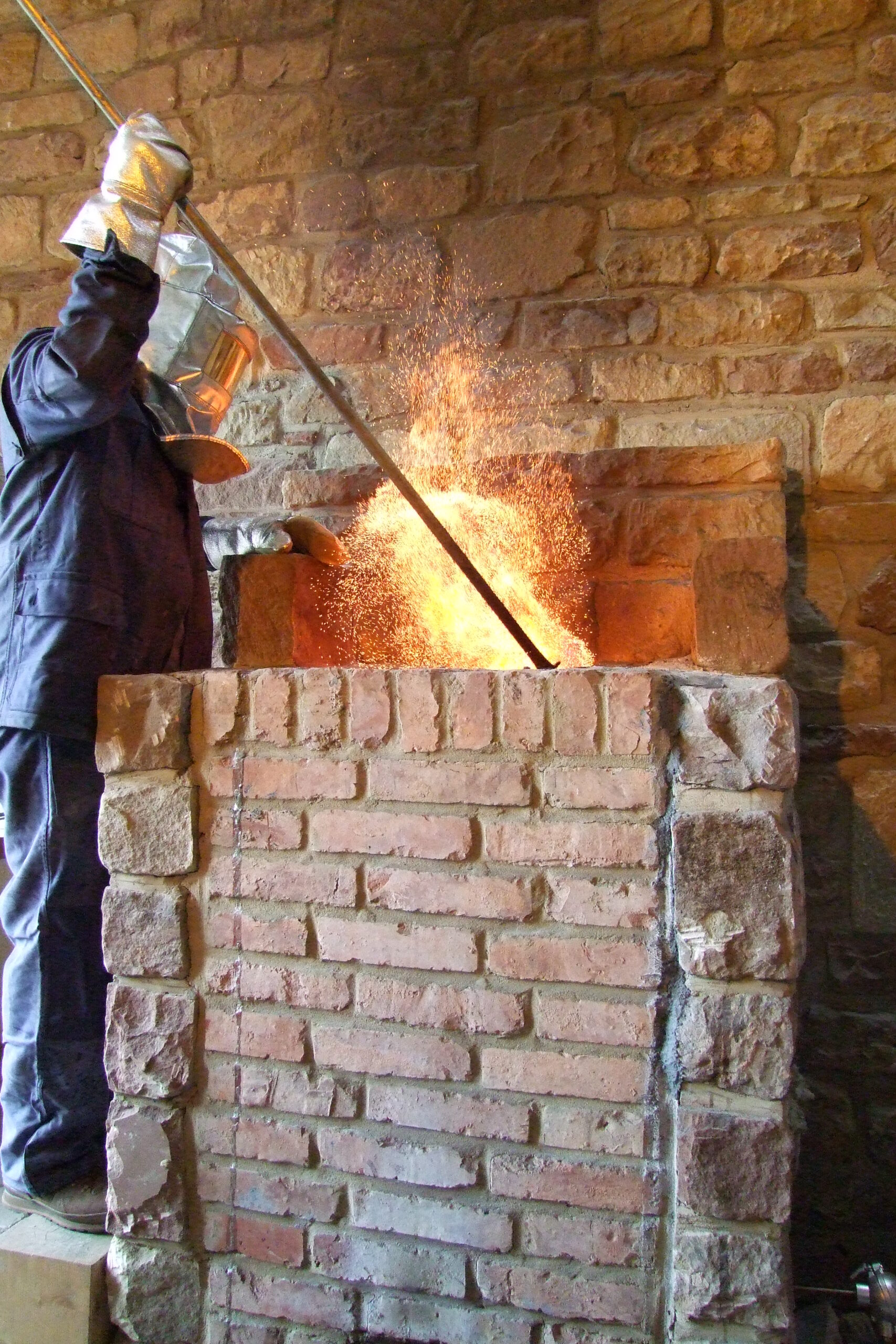 Komplette Schmelzanlage in Betrieb nach historischem Vorbild